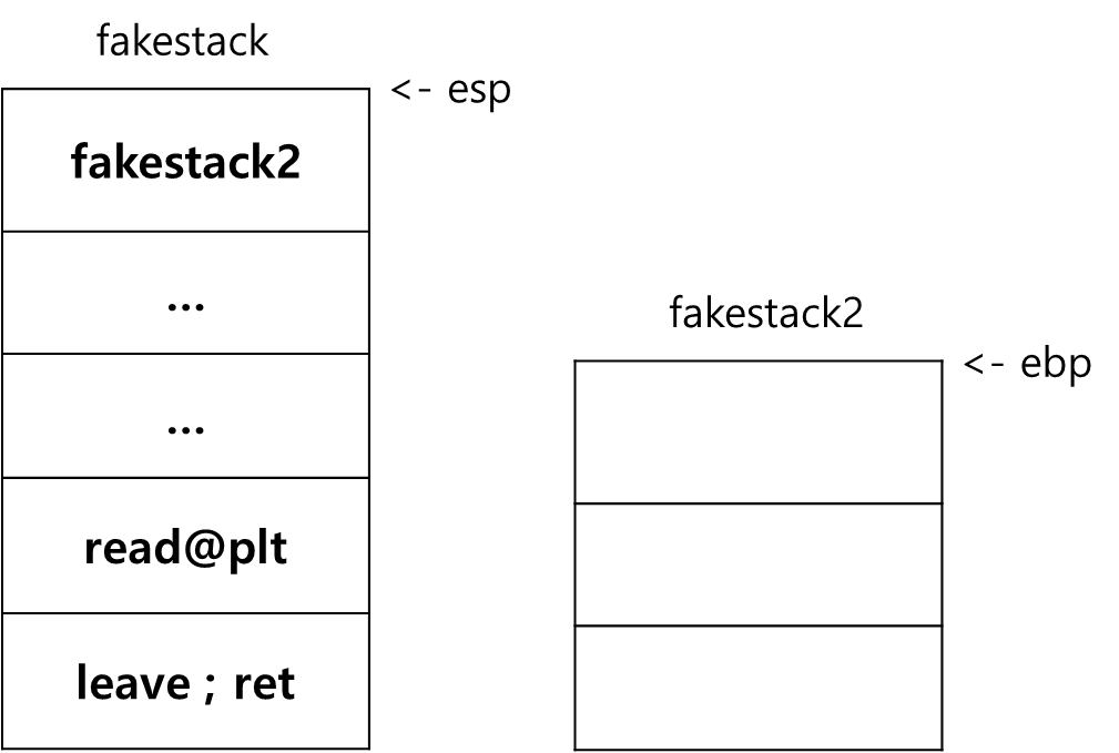 - 페이로드를 쓸 수 있는 영역이 없고, 입력함수 + leave_ret 을 넣을 수 있을만큼 overflow 가 발생할 때