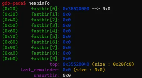 fb->fd = 0; // fastbin 리스트 비우기