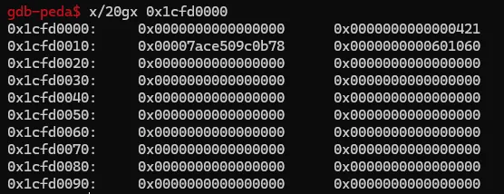 - ptr[0]은 해제된 청크의 fd 포인터를 가리킨다.