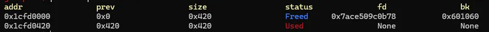 청크를 확인해보면 bk가 0x601060으로 바뀌어 있다.